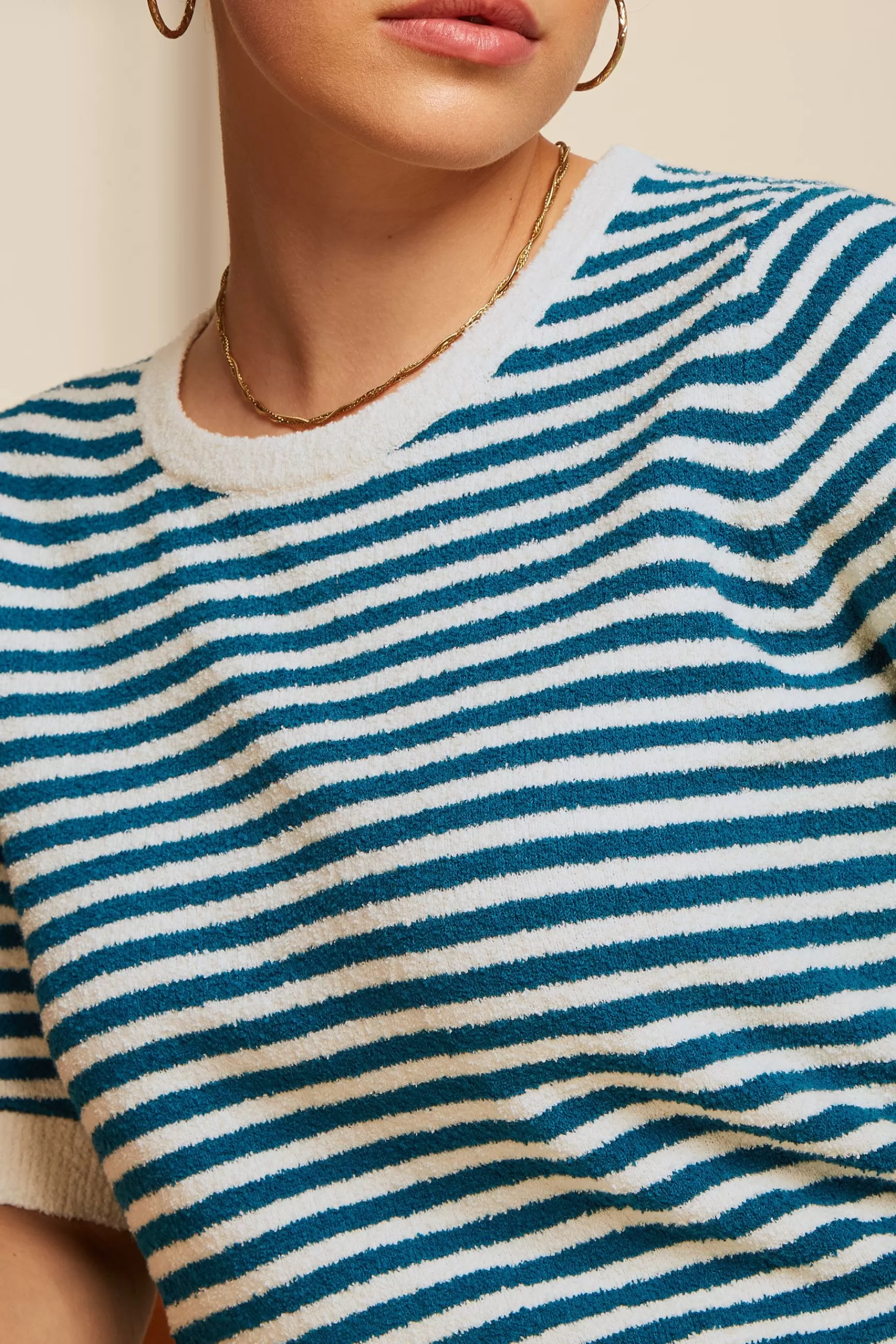 - Geribbelde zoom, manchetten en halslijn