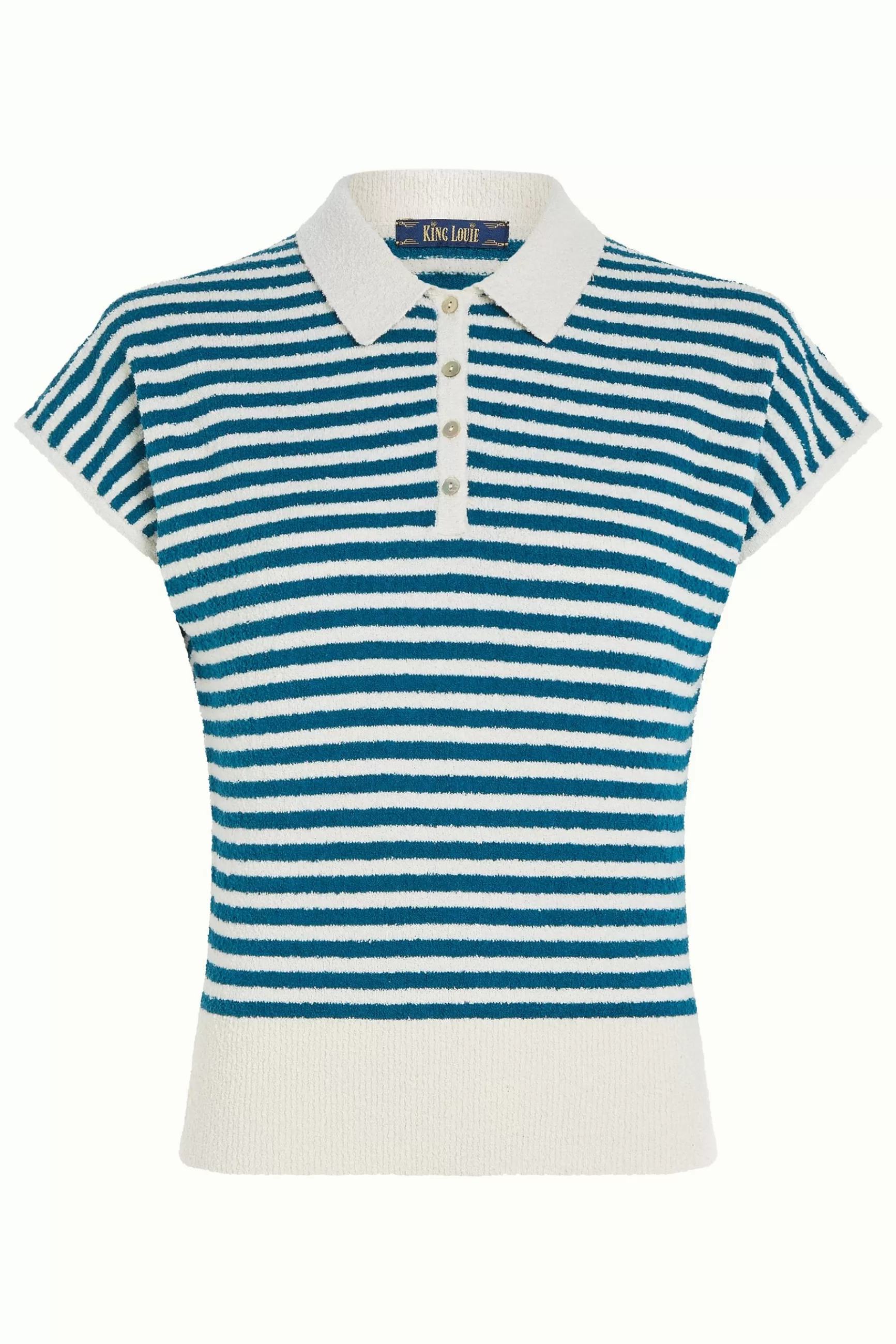 Product details PoloKorte mouwenIets losse pasvormKnoopsluitingGeribbelde afwerkingenBadstofStretch Gestreept patroon p…