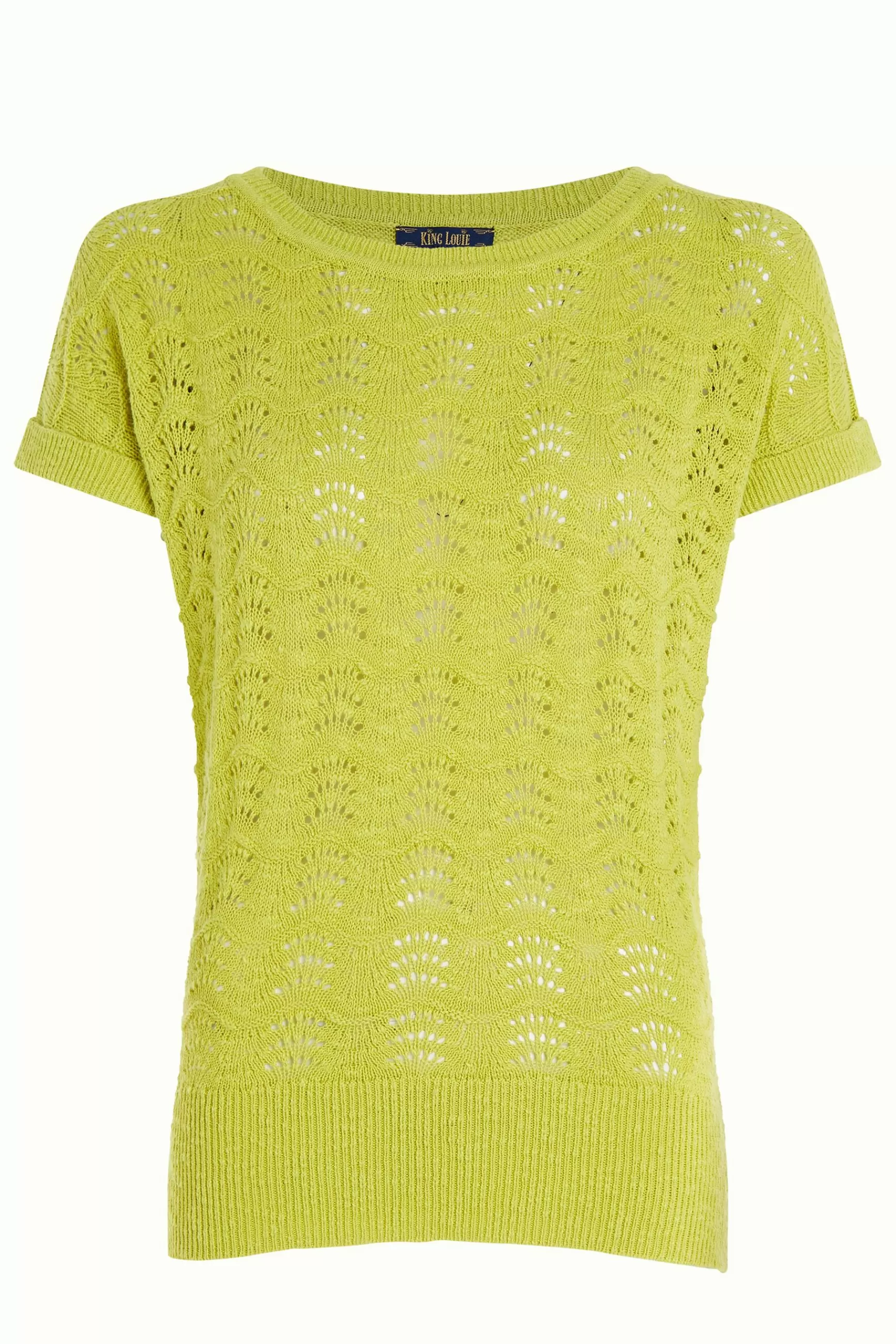 Product details Topmet boothalsKorte mouwen met manchettenGeribbelde afwerkingenFijn opengewerkt breiselStretch stof pr…