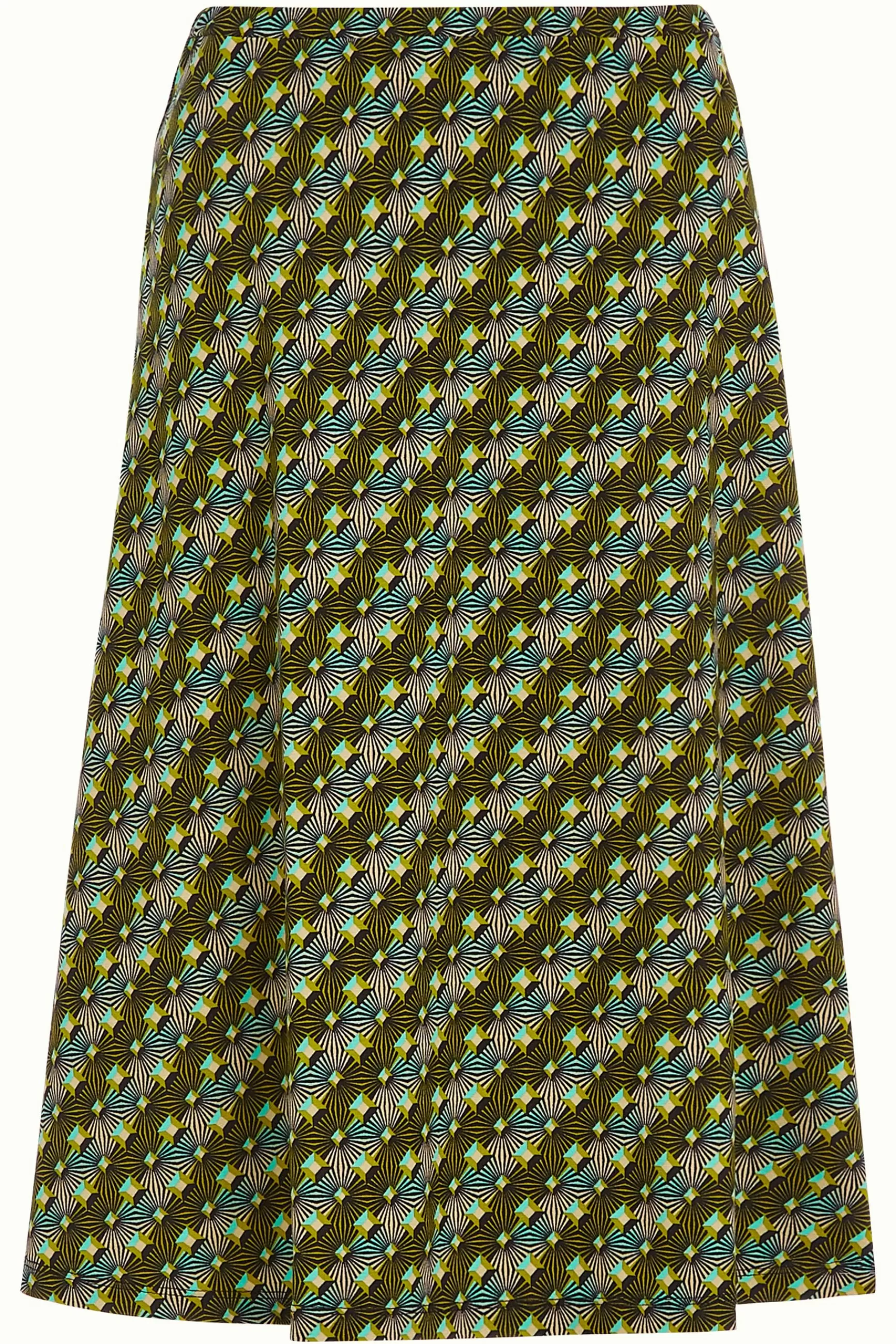 Product details Wijd uitlopende midi rokElastische taillebandJerseyStretchGrafische print productspecificatiesGemaakt i…