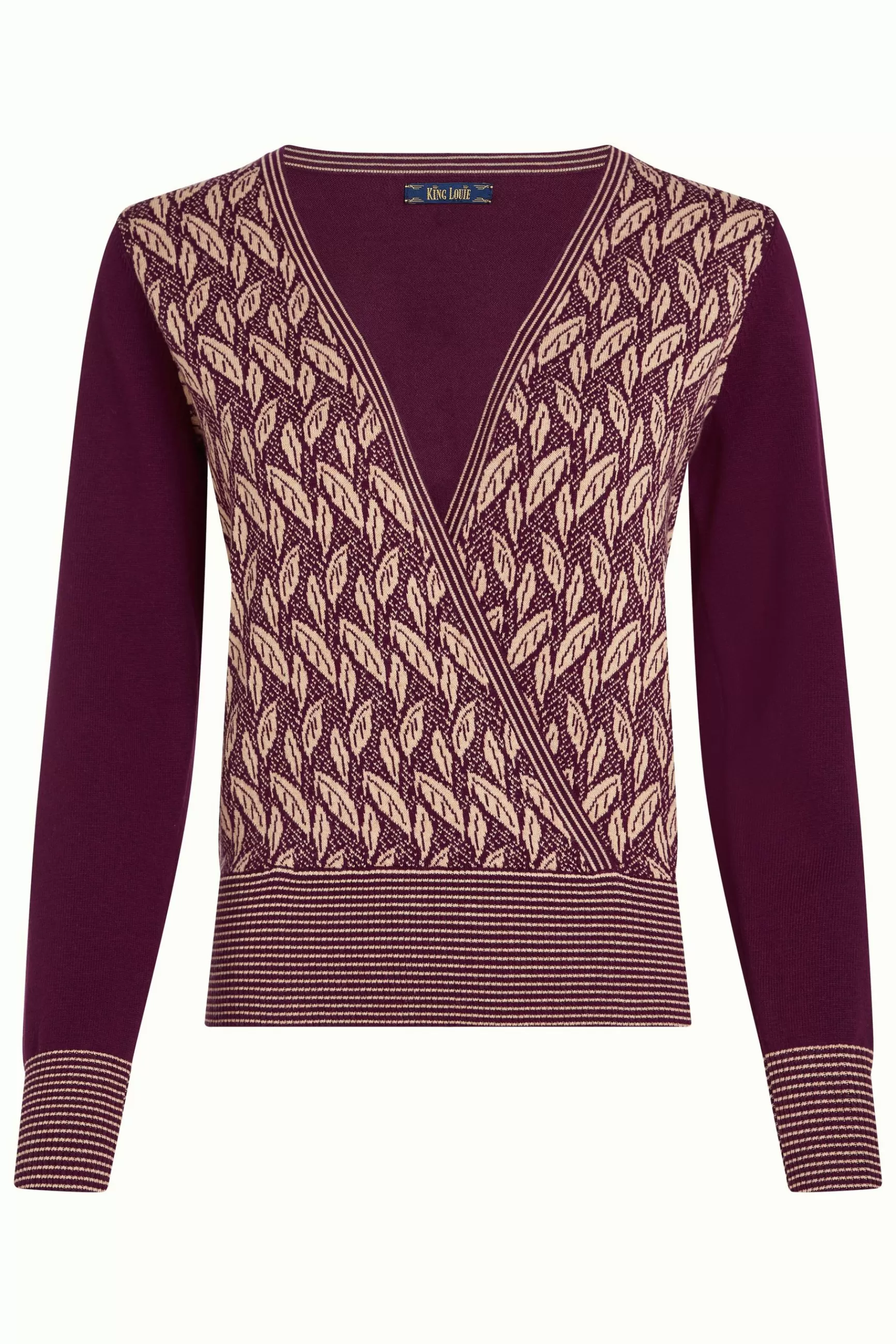 Product details OverslagtopV-halsLange mouwenGeribbelde zoom en manchettenStretchBladeren print productspecificatiesGem…