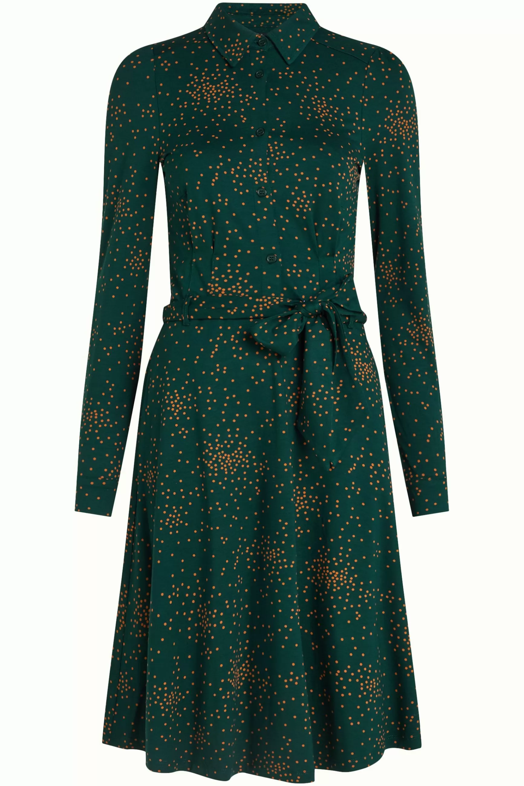 Product details OverhemdjurkLange mouwenBlousekraagStrikceintuurSteekzakkenJerseyStretchStippenprint productspecificati…